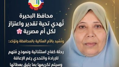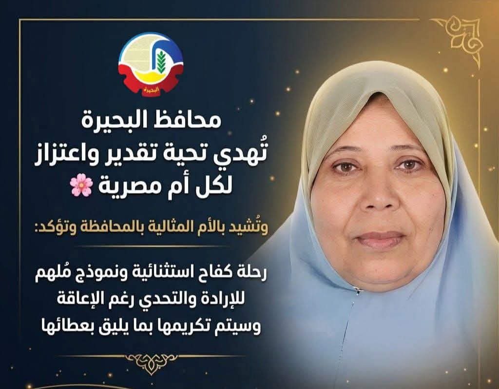 محافظ البحيرة تهنئ السيدة نجاة صهوان لفوزها بلقب الأم المثالية على مستوى المحافظة