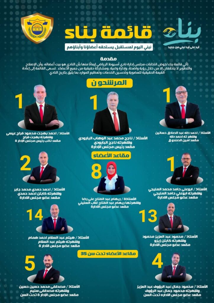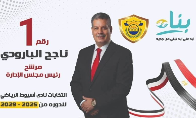 رجل الاعمال ناجح البارودي – مرشح مقعد رئيس مجلس إدارة نادي اسيوط الرياضي – رقم 1 – قائمة بناء 🗣️ ✅