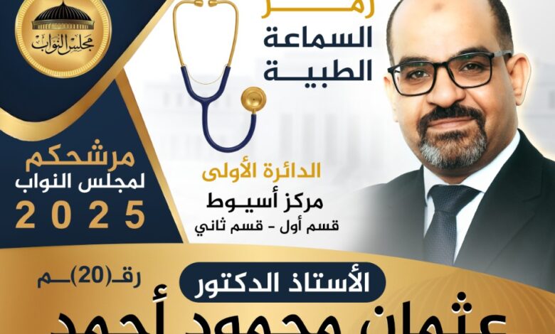 “دكتور عثمان” استاذ مساعد جـ ـراحة الأوعـ ـية الد موية جامعة أسيوط .. مرشح للانتخابات مجلس النواب باسيوط عن دائرة مركز ومدينة أسيوط رمز سماعة الطبيب . بالعلم والعلماء تتقدم الأمم .