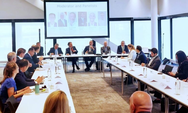 وشارك السيد/ حسام هيبه في جلسة نقاشية بعنوان “فرص التعاون في مجال الهيدروجين الأخضر بين مصر وهولندا” بحضور كل من السيد/ وليد جمال الدين، الرئيس التنفيذي للهيئة الاقتصادية لقناة السويس، والسيد/ أيمن سليمان، الرئيس التنفيذي لصندوق مصر السيادي، والسيد/ جيجس بوستما، مدير أسواق الطاقة بوزارة الشؤون الاقتصادية والسياسات المناخية الهولندية، والسيد/ إريك فان دير هايدن، مدير شؤون انتقال الطاقة بميناء روتردام، والسيد/ بارت دي سميت، مسؤول تطوير الهيدروجين الأخضر بمؤسسة الاستثمار الدولي الهولندية.
