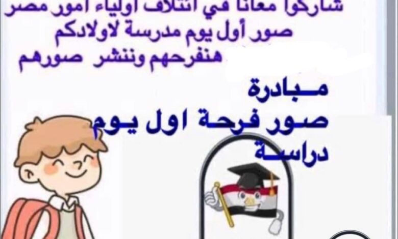 أكدت داليا الحزاوي مؤسس ائتلاف اولياء امور مصر وخبيرة الأسرية ، علي اعادة تفعيل مبادرة صور فرحة أول يوم دراسة، لتنفيذها أول يوم بالمدارس لتشجيع الطلاب على الذهاب للمدرسة وإدخال الفرحة على قلوبهم