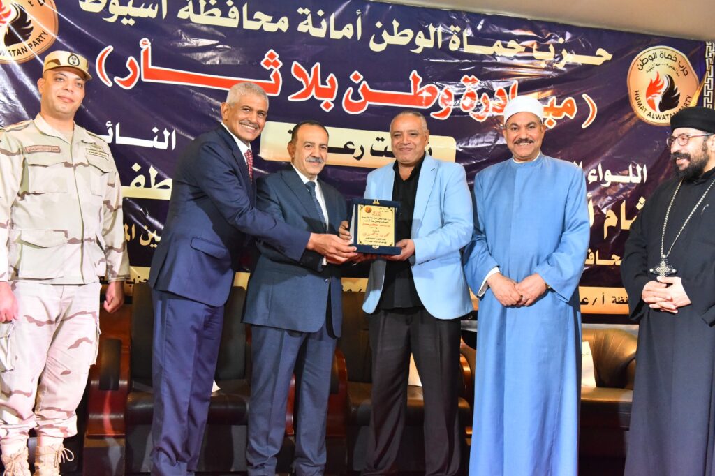 تكريم الزميل محمود العسيري، مدير مكتب جريدة الجمهورية باسيوط، على هامش تدشين حزب حماة الوطن بأسيوط لمبادرة “وطن بلا ثـ.ـأر” بحضور محافظ الإقليم