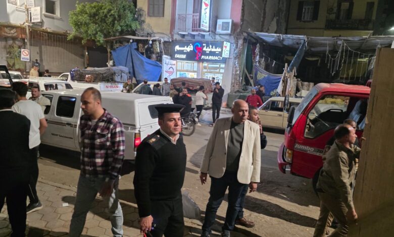 حملة مكبره لإزالة الاشغالات والتعدى على الطريق العام ومتابعة التزام المحال التجارية بقرار رئيس مجلس الوزراء بتحديد موعد الإغلاق .