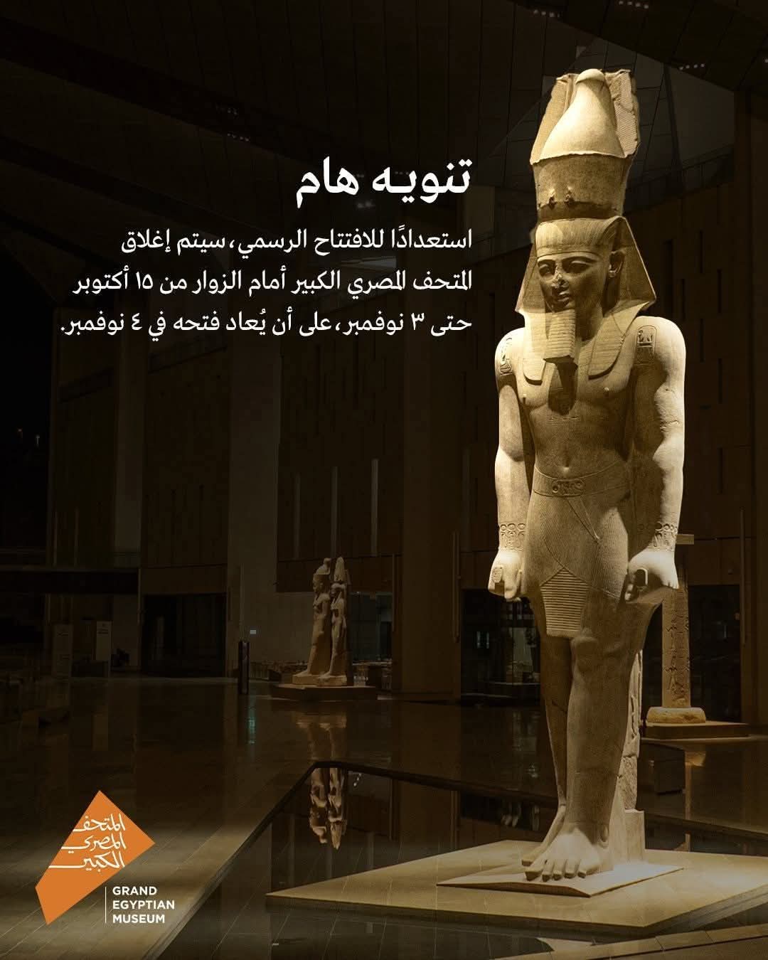 واعتبارا من الغد، يغلق المتحف أبوابه أمام الزائرين وحتى يوم 4 نوفمبر المقبل، لتنتهي بذلك فترة التشغيل التجريبي التي استمرت نحو عام.