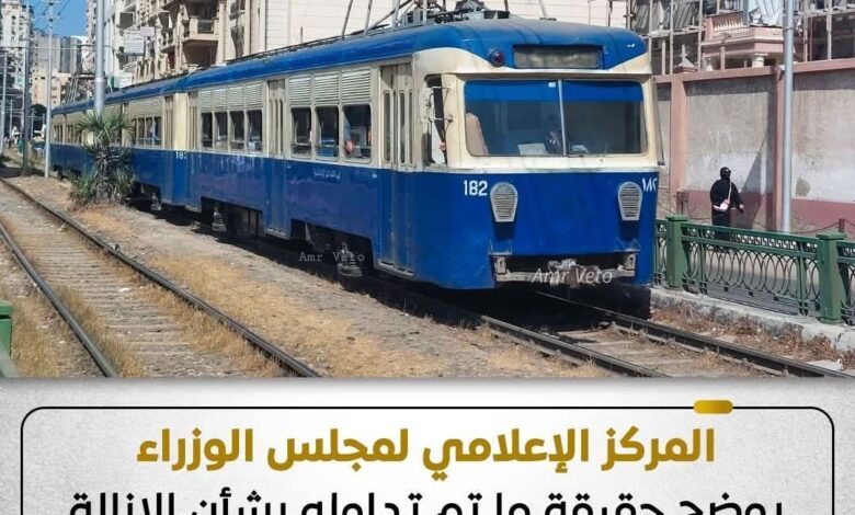 المركز الإعلامي لمجلس الوزراء يوضح حقيقة ما تم تداوله بشأن الإزالة النهائية لترام الرمل بمحافظة الإسكندرية