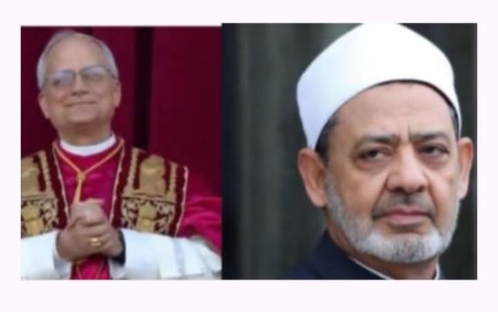 هنا الامام الاكبر الاستاذ الدكتور أحمد الطيب شيخ الأزهر الشريف إتصال هاتفي ، اليوم البابا ليو الرابع عشر بمناسبة انتخابه للكنيسة الكاثوليكية