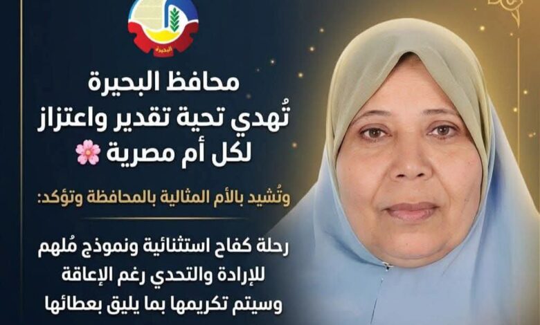 كما وجهت محافظ البحيرة تحية إعزاز وتقدير إلى كل أم مصرية، مؤكدةً أن الأم ستظل رمزاً خالداً للتضحية والعطاء، وصانعة الأجيال وبانية مستقبل الوطن، وأن ما تقدمه الأمهات من تضحيات يومية يستحق كل الدعم والتقدير.