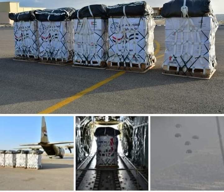 أقلعت عدد من طائرات النقل العسكرى المصرية والإماراتية من جمهورية مصر العربية محملة بعشرات الأطنان من المساعدات الغذائية ومواد الإغاثة العاجلة لتنفيذ أعمال الإسقاط الجوى على شمال قطاع غزة وذلك فى ظل الأزمة التى يعانى منها الأشقاء الفلسطينيين بالقطاع من نقص فى كافة الإحتياجات الإنسانية ،