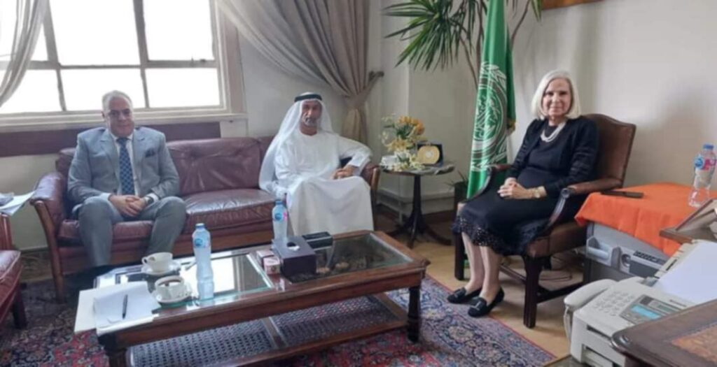 استقبلت معالي الدكتورة هيفاء أبو غزالة، الأمينة العامة المساعدة، ورئيسة قطاع الشؤون الاجتماعية في جامعة الدول العربية في مكتبها بمقر الأمانة العامة للجامعة بالقاهرة معالي أحمد بن محمد الجروان رئيس المجلس العالمي للتسامح والسلام، وذلك بحضور الدكتور احمد فولي مستشار رئيس المجلس العالمي للتسامح والسلام للشؤون القانونية.