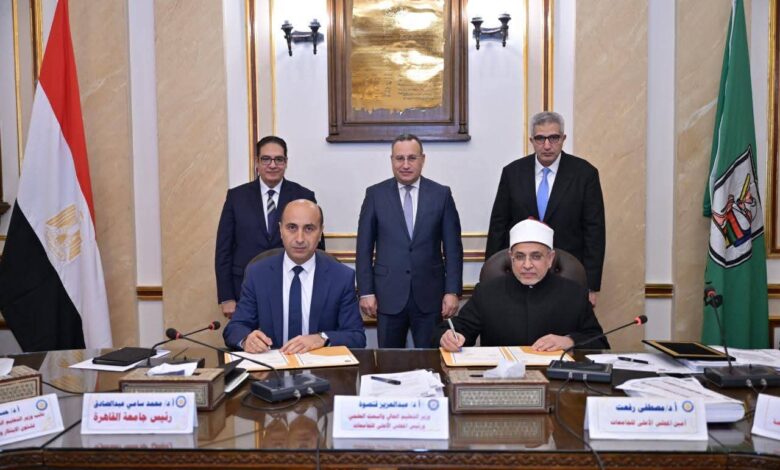 وأضاف المتحدث الرسمي أن المجلس شهد توقيع مذكرة تفاهم بين جامعة الأزهر وجامعة السويس، بهدف تعزيز التعاون الأكاديمي، وتنفيذ الندوات والمنتديات وورش العمل والمؤتمرات، والتعاون في برامج القيادة وريادة الأعمال وبرامج المهارات الشخصية، والتعاون في الإرشاد المهني والخدمات والاهتمام بالأنشطة الطلابية. ووقع مذكرة التفاهم الدكتور سلامة داود رئيس جامعة الأزهر، والدكتور أشرف حنيجل رئيس جامعة السويس.